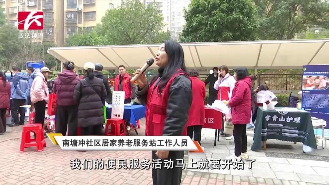 “量血压、磨刀、理发,还有一系列的活动,我觉得搞得挺好,方便了我们这些老人,不用走出小区,这些活动就自然的送上门来,觉得很方便。”南塘冲社区居民汪慧芬说。
